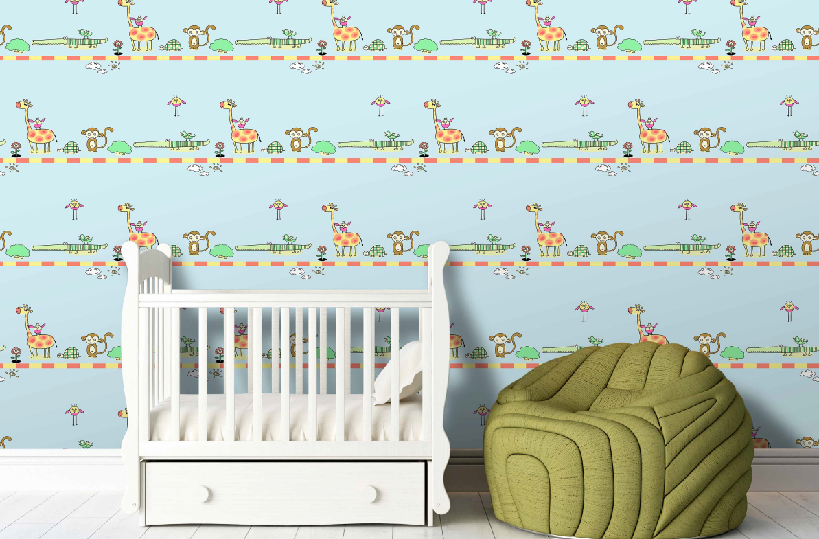 Animal Cartoon Wallpaper - Blue (Galaxy 7829-1J)