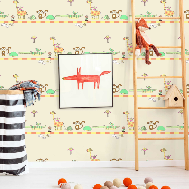 Animal Cartoon Wallpaper - Yellow (Galaxy 7829-2J)