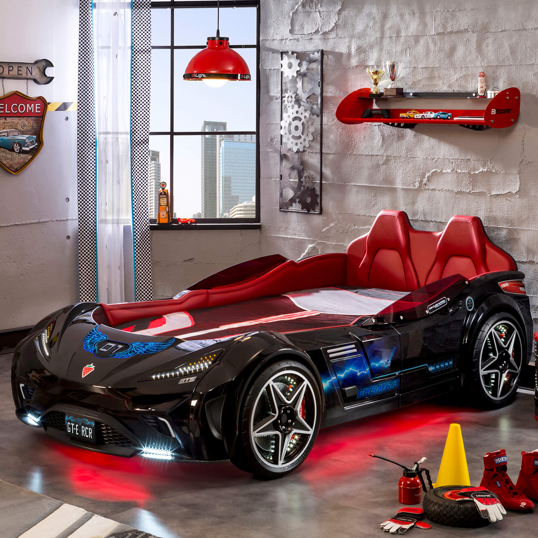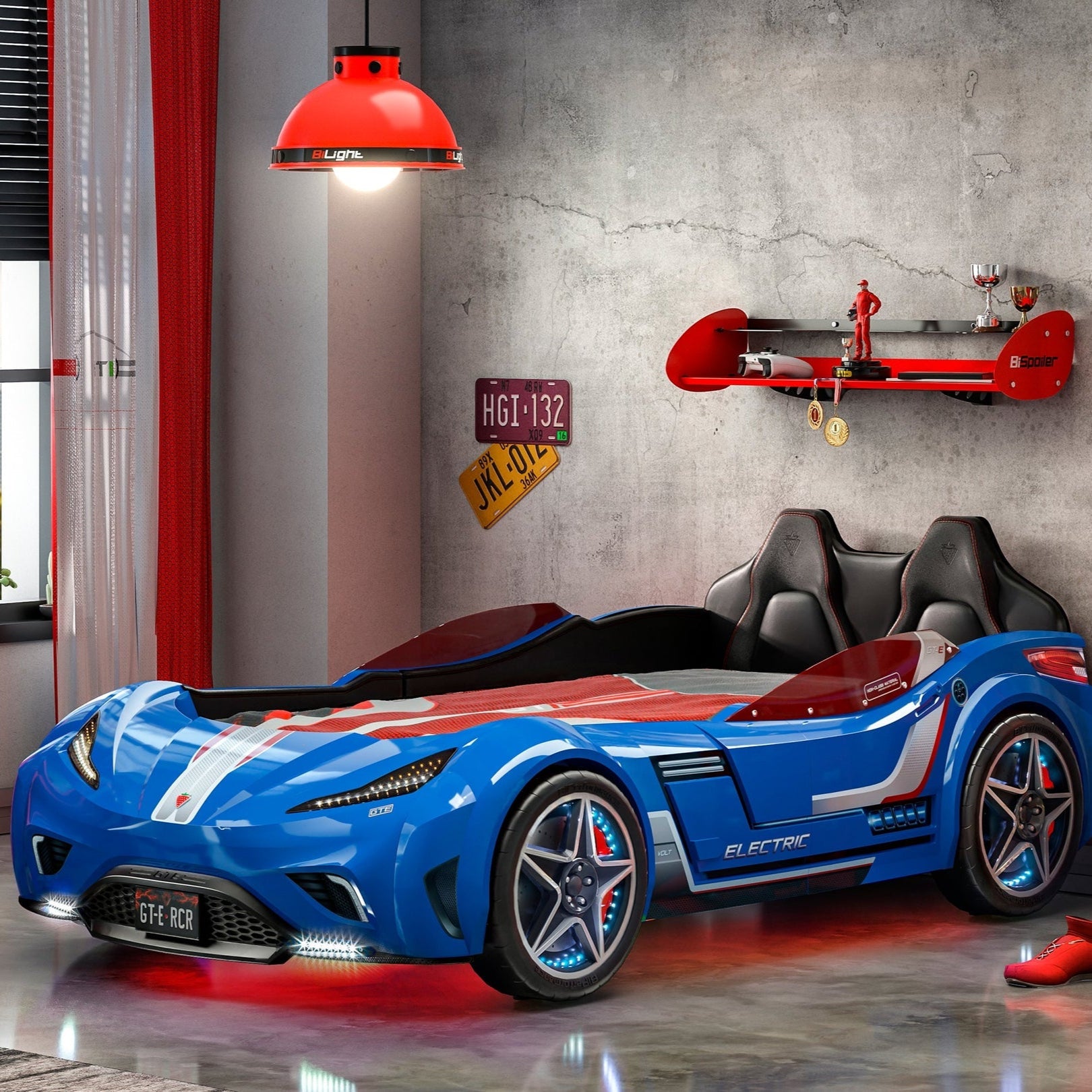 The Cilek GTE Car Bed, designed to resemble a real sports car with its detailed interior and exterior, is an excellent addition to any children's room. Its realistic unlocking sound, star rims, and LED-lit design spark your child's imagination, making it a truly exciting option.
