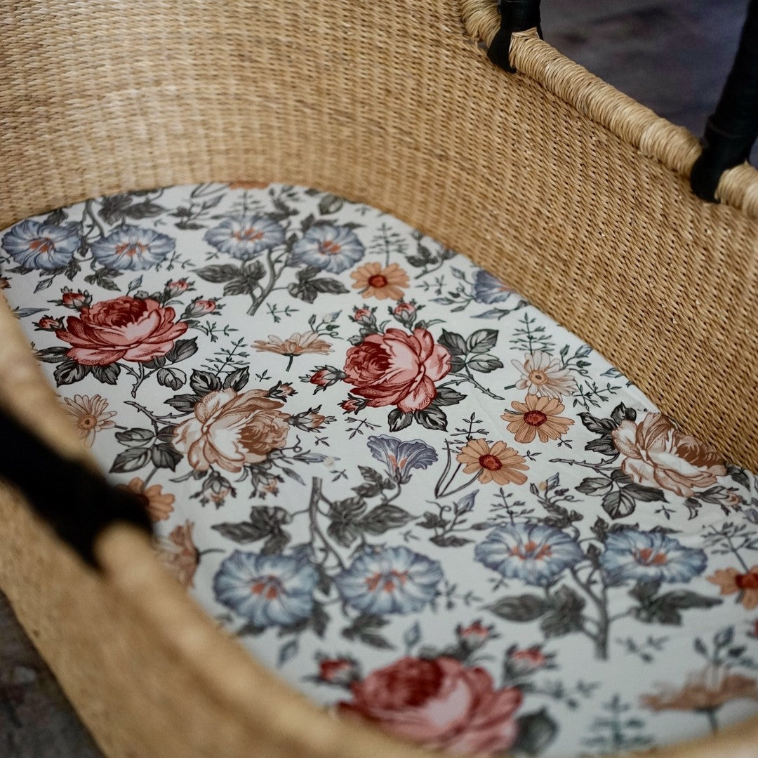 This fitted bassinet sheet features an array of blooming florals in a vintage romantic tone. It is a perfect addition to spruce up your little bub’s nursery. The sheets have elastic all around to ensure a secure fit. Fits most standard sized bassinet mattress.