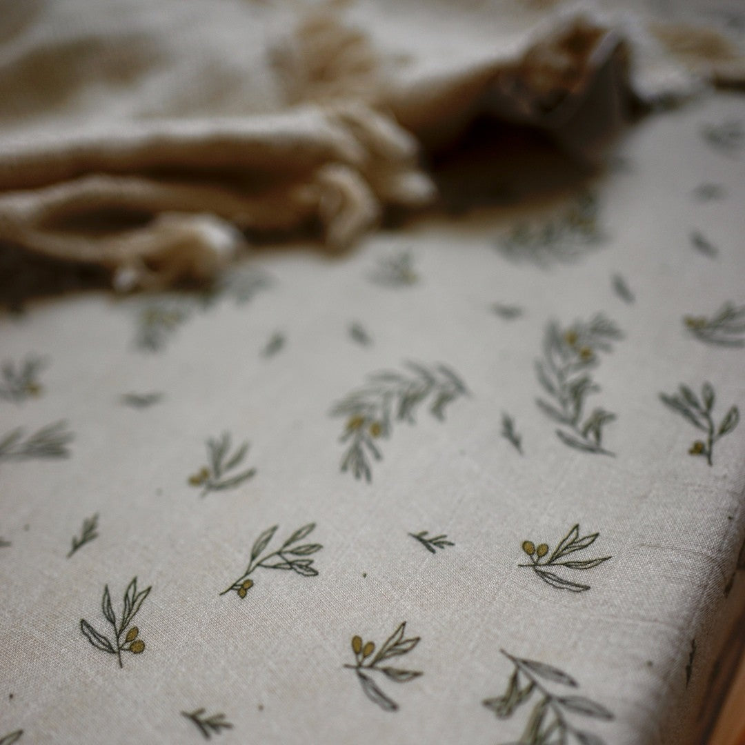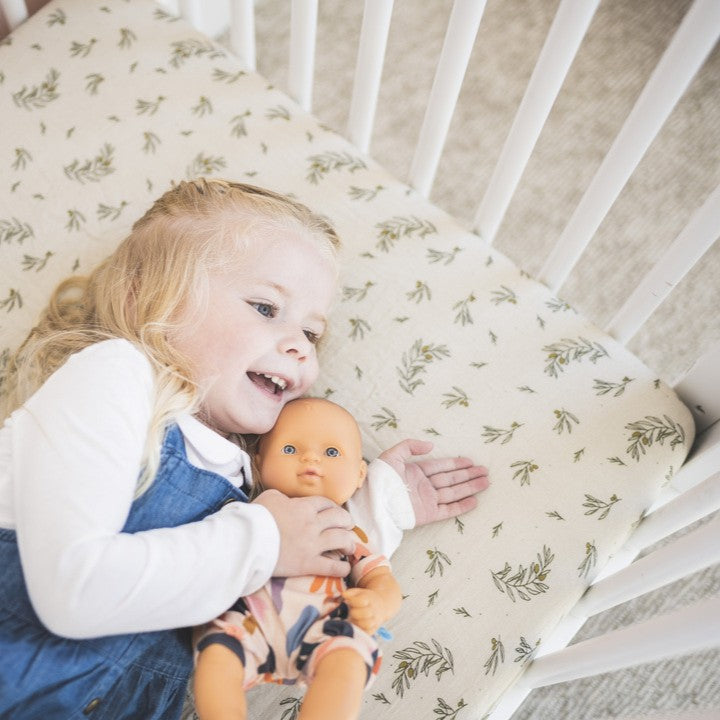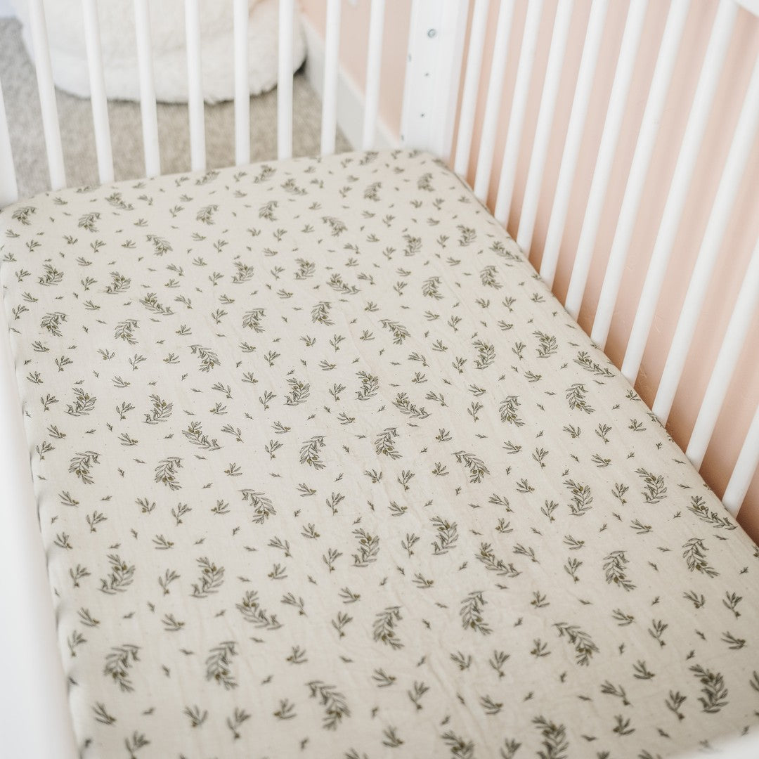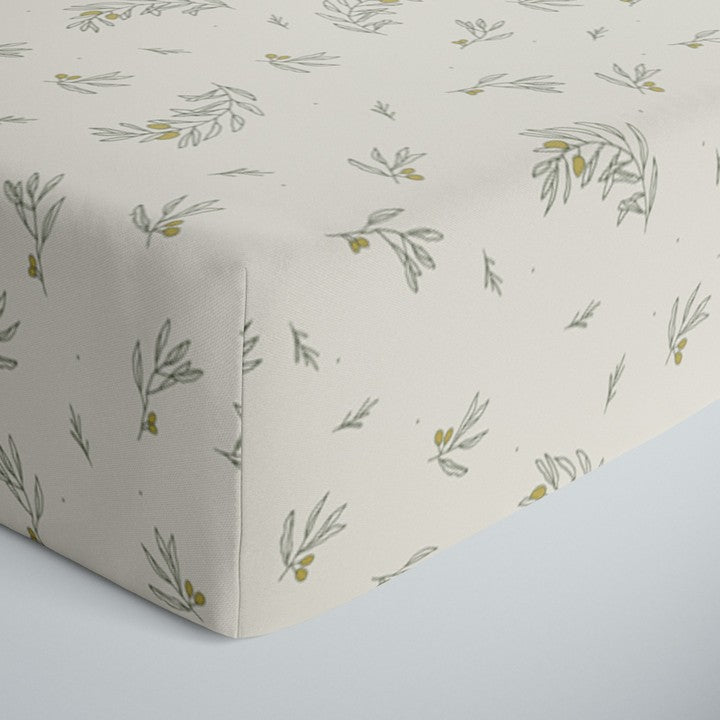 This fitted cot sheet features a dreamy illustration of olive sprigs and branches. It is a perfect addition to spruce up your little bub’s nursery. The sheets have elastic all around to ensure a secure fit. Fits most standard sized cot mattress.