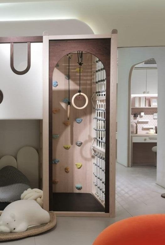 Loft bed + rock climbing structure + slide platform: L333 x D242 x H240cm
