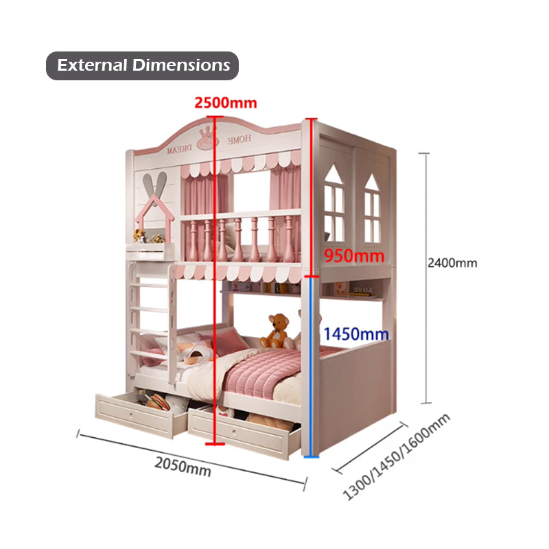 L205cm x W160cm x H250cm (Bedframe external measurements)