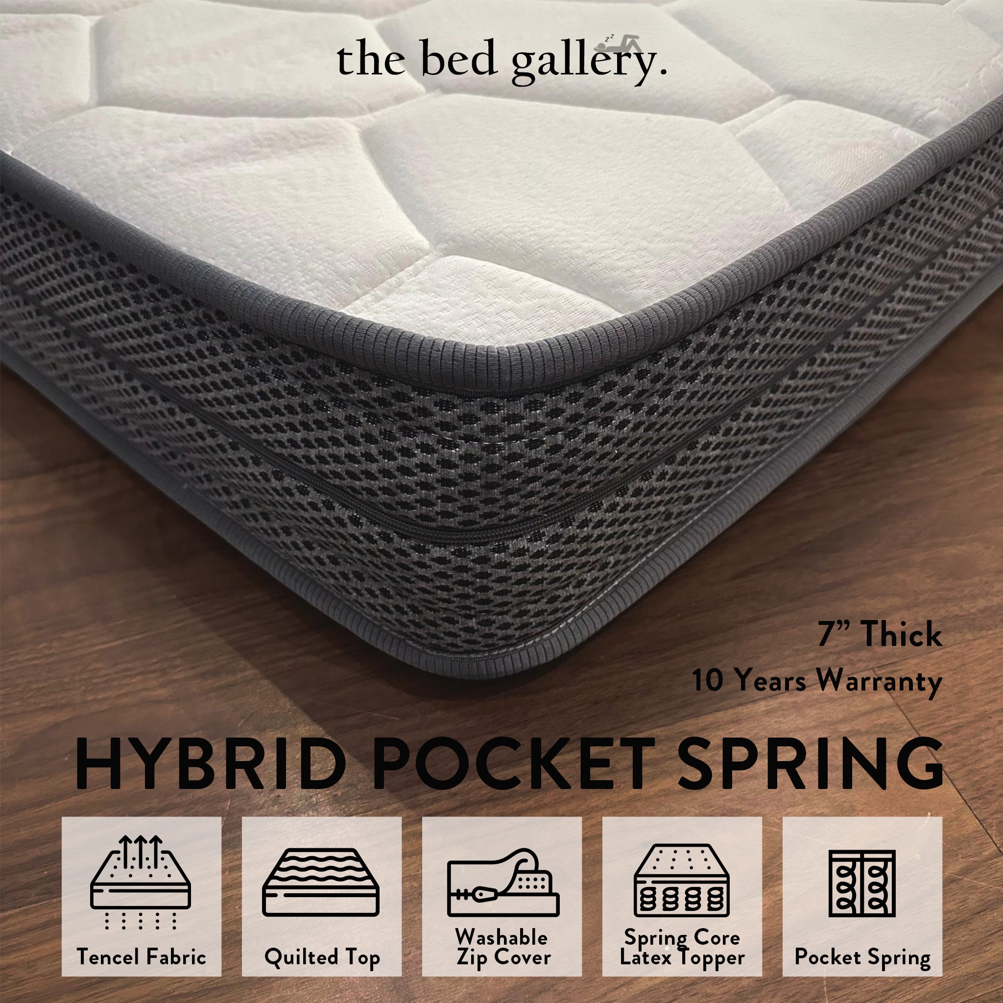 Experience a good balance of bounce and lumbar support with our Bed Gallery 7" Hybrid Pocket Spring Mattress. Designed for a restful sleep, this mattress combines individually encased pocket springs for targeted support and a plush latex topper for enhanced comfort and pressure relief.